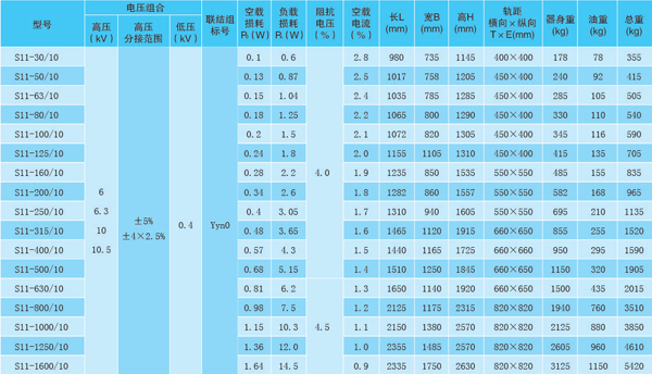 10kV級S11型30-1600kVA雙繞組無勵磁調(diào)壓變壓器